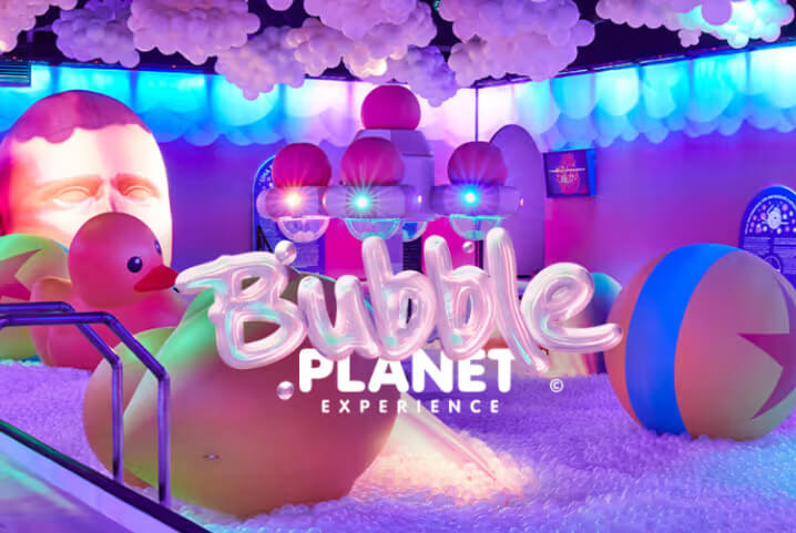 Bubble Planet is a fully immersive journey across 11 themed rooms designed to awaken all five senses.