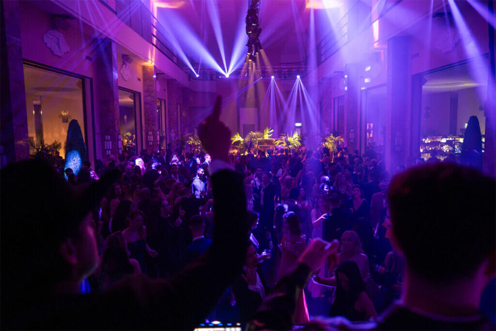 When the clock strikes nine the doors will open for the full celebration. From that moment the night truly bursts to life with an open bar an electrifying dance floor led by talented DJs a sweet table that would tempt even the strongest willpower a delightful midnight snack and a steady flow of surprises that keep the energy soaring until three in the morning. ( Get ready to fill you evening purses with delectable candies and sweets !)
